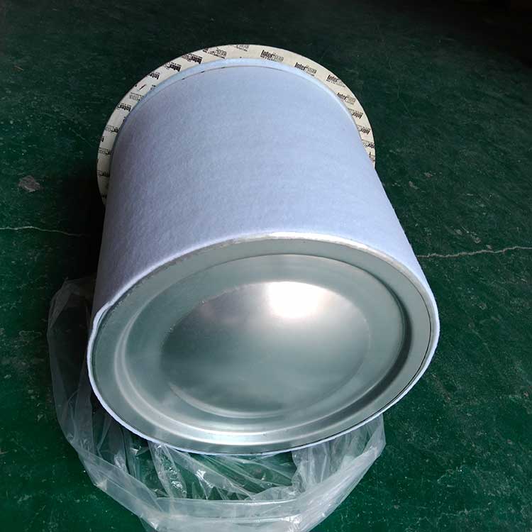 油氣分離元件是決定空壓機(jī)壓縮空氣品質(zhì)的關(guān)鍵部件,高質(zhì)量的油氣分離元件不僅可保證壓縮機(jī)的高效率工作,且濾芯壽命可達(dá)數(shù)千小時(shí)。從壓縮機(jī)頭出來的壓縮空氣夾帶大大小小的油滴,大油滴通過油氣分離罐時(shí)易分離,而小油滴(直徑1μm以下懸浮油微粒)則必須通過油氣分離濾芯的微米級玻纖濾料層過濾。油微粒經(jīng)過濾材的擴(kuò)散作用,直接被濾材攔截以及慣性碰撞凝聚等機(jī)理使壓縮空氣中的懸浮油微粒很快凝聚成大油滴,在重力作用下油凝聚在油分芯底部,通過底部凹處回油管進(jìn)口返回機(jī)頭潤滑油系統(tǒng),從而使壓縮機(jī)排出更加純凈無油的壓縮空氣。壓縮空氣中的固體粒子經(jīng)過油分芯時(shí)滯留在過濾層中,這就導(dǎo)致了油分芯壓差(阻力)不斷增加。隨著油分芯使用時(shí)間增長,當(dāng)油分芯壓差達(dá)到0.08到0.1Mpa時(shí),或者壓縮空氣出口產(chǎn)生明顯的含油量時(shí),濾芯必須更換,否則增加壓縮機(jī)運(yùn)行成本(耗電或耗油)。