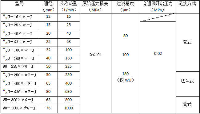 則過濾器型號為:WUI·BH—100×*—J XUI·BH—100×*—J