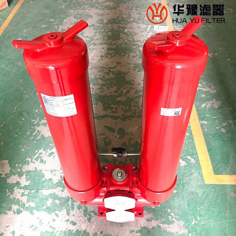 它的工作特點是當(dāng)一只過濾器濾芯堵塞需要更換時,不需要停止主機工作,只要打開壓力平衡并轉(zhuǎn)動換向閥,另一只過濾器即可參加工作,然后更換已堵塞的濾芯。